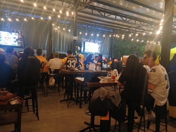 Juan Soto, propietario de Don Aquiles La Huerta, comparte que el lugar se convirtió en casa de los Steelers de manera accidentada. Detalla que un día cualquiera un grupo de aficionados pidió que les proyectaran el partido, y a partir de ese momento, se volvieron fieles clientes que no faltaban a la cita de cada fin de semana.