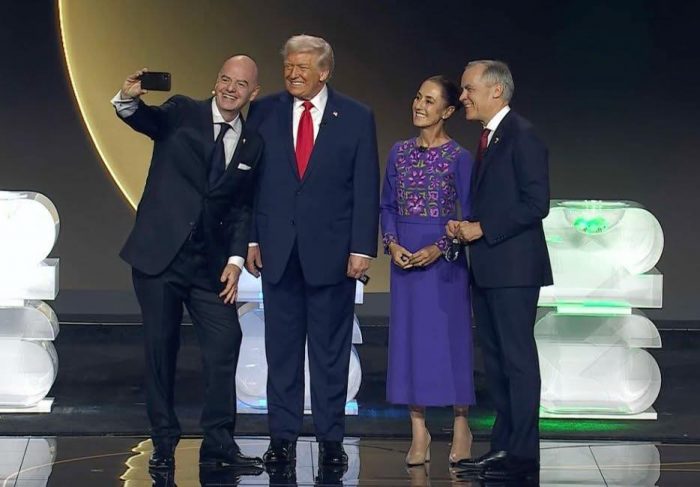 Ahí, a unos cuantos metros de la presidenta de México, Claudia Sheinbaum Pardo, quien ha cuestionado los hostigamientos comerciales que han surgido desde el vecino país, así como la persecución migratoria a los compatriotas, Donald Trump se colgó la medalla que la FIFA le preparó “para que la puedas llevar a donde quieras por ser un líder que se preocupa por la gente”.