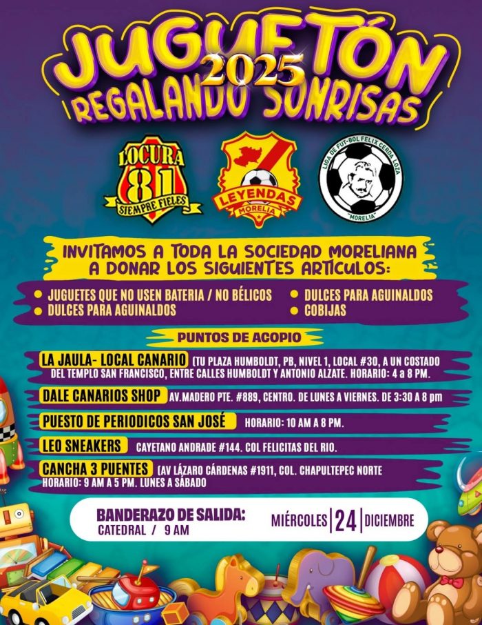 Con la misión de apoyar a los sectores más vulnerables de Morelia en esta temporada decembrina, la barra Locura 81 lanzó la convocatoria del Juguetón 2025 “Regalando Sonrisas”, la cual estará activa hasta el 24 de diciembre.